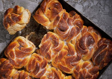 Kaneelbroodjes in een ovenschaal